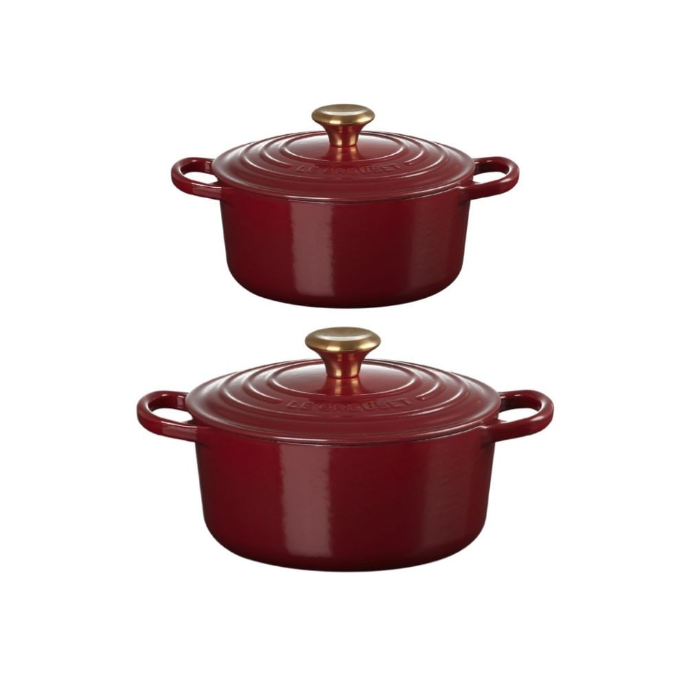• 01 PANELA REDONDA LE CREUSET 20CM SIGNATURE FERRO ESMALTADO VERMELHO RHONE - Destaques: • Exterior esmaltado resistente feito para prevenir rachaduras e lascas;