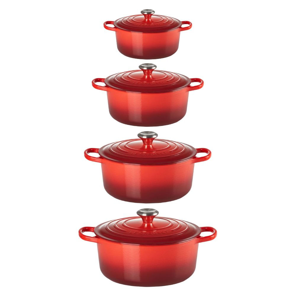 • 01 PANELA REDONDA LE CREUSET 26CM SIGNATURE FERRO ESMALTADO - Destaques: • Exterior esmaltado resistente feito para prevenir rachaduras e lascas;