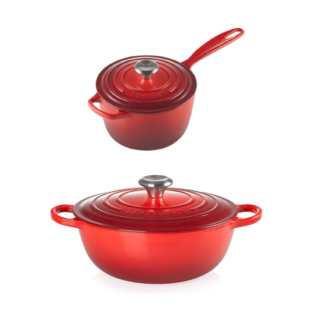 KIT LE CREUSET PANELA MARMITA 26CM E MOLHEIRA 16CM EM FERRO ESMALTADO VERMELHO