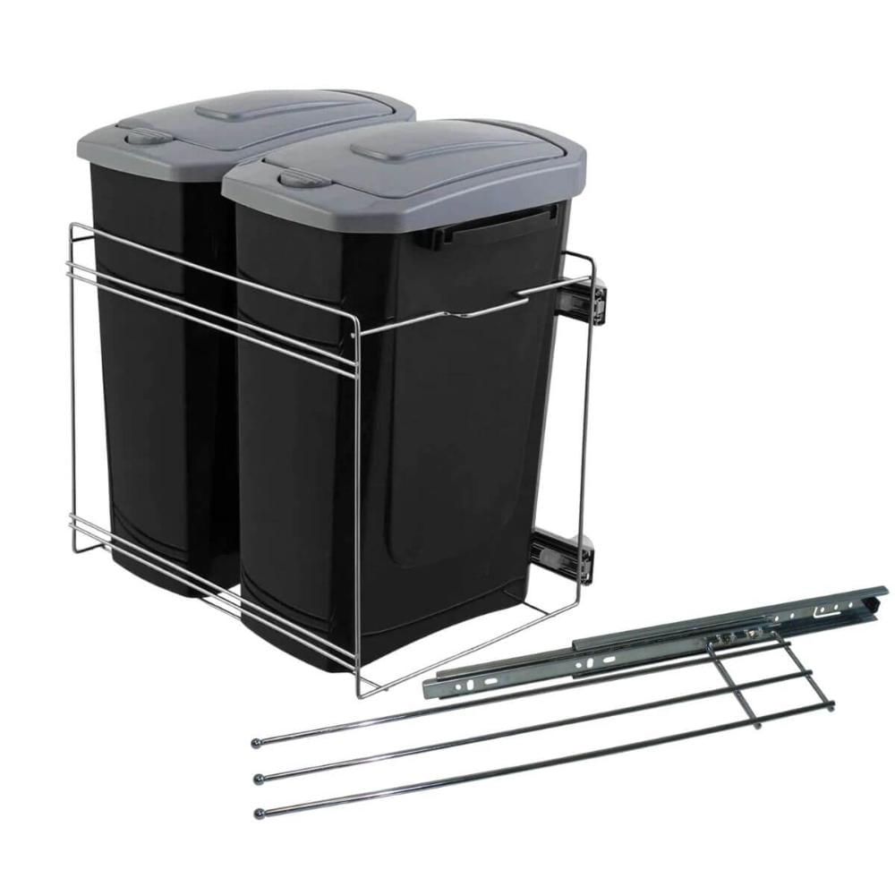Kit Lixeira Dupla 15L e Porta Pano de Prato Triplo Cozinha Corrediças Deslizantes Móveis.