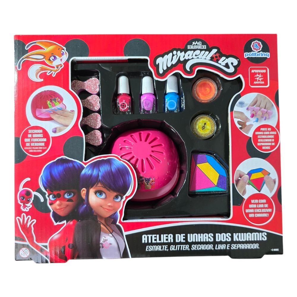 Kit de Manicure Miraculous Ladybug Polibrinq: Unhas Superpoderosas!Deixe a imaginação das pequenas heroínas voar com o incrível Kit de Manicure Miraculous Ladybug da Polibrinq! Inspirado na corajosa e charmosa Ladybug, este kit completo transforma o cuidado com as unhas em uma aventura divertida e cheia de brilho.