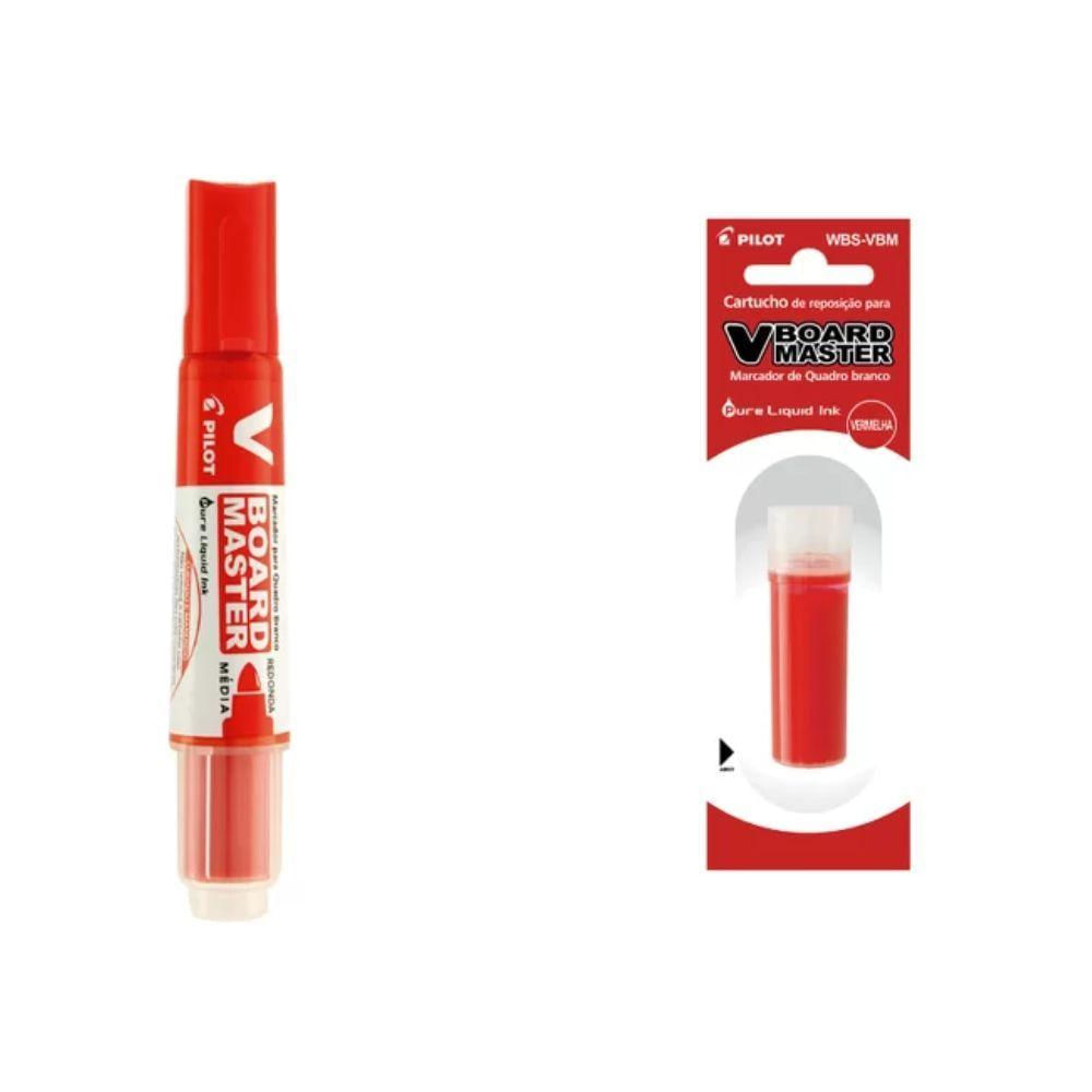 Kit Marcador Para Quadro Branco + Refil Pilot V-board Master Vermelho