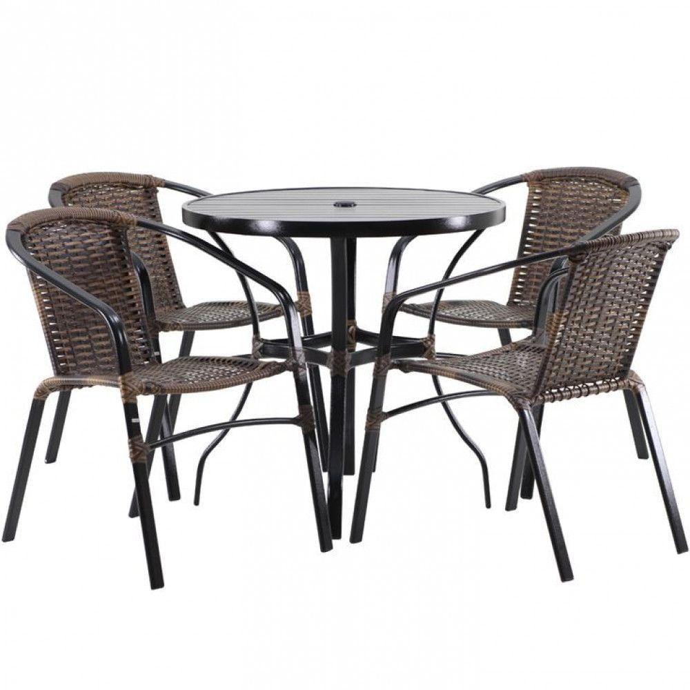 Kit Mesa 1m + 4 Cadeiras Alumínio Jardim Piscina Argila