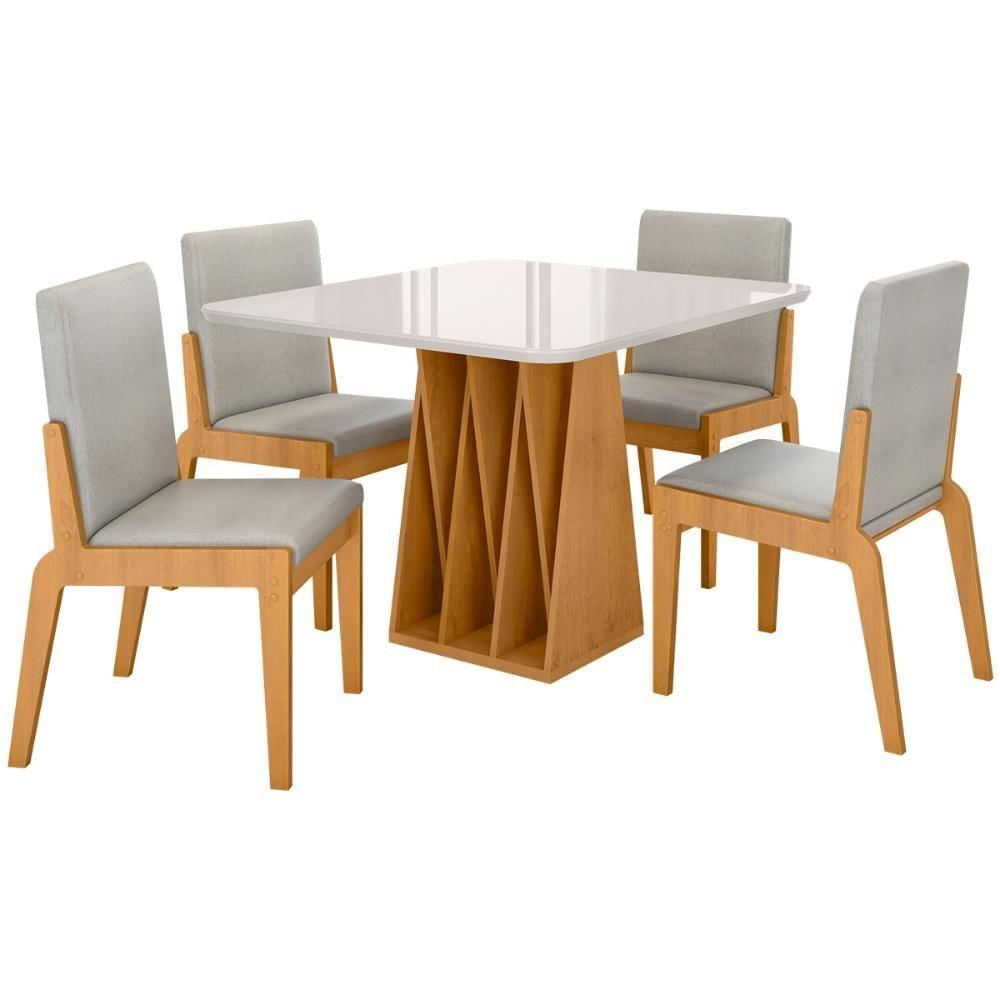 Kit Mesa De Jantar Orquestra Com 4 Cadeira Sinfonia Em Linho Naturale/off White/cinza