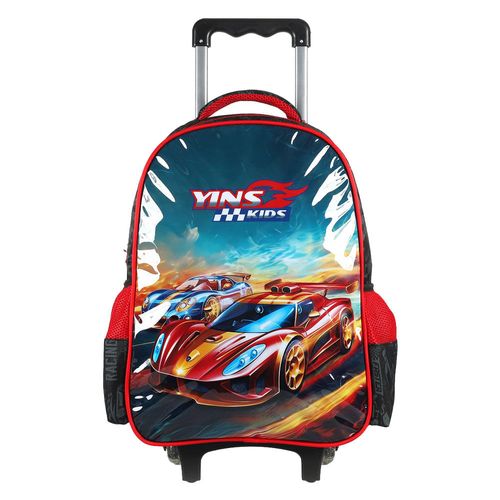 "MOCHILA INFANTIL C/ RODINHA RACING 17"" YINS KIDS TAMANHO: (17"") 43,5 X 31 X 13 CM COR: AZUL COM VERMELHO / PRETO COM VERMELHO MA TERIAL: POLIESTER COM PVC "