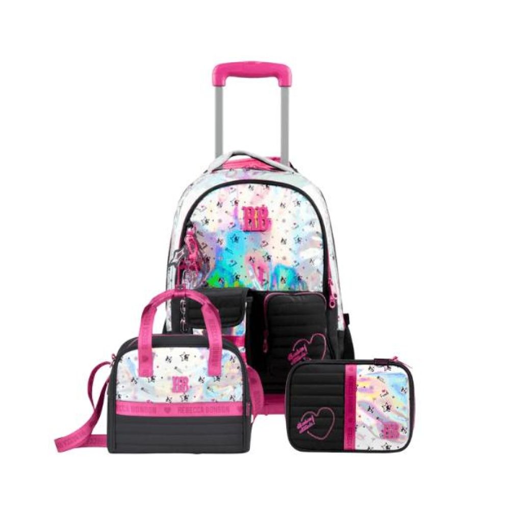 Kit Mochila de 4 Rodinhas + Lancheira Térmica + Estojo Box Feminino Rebecca BonBon Preto