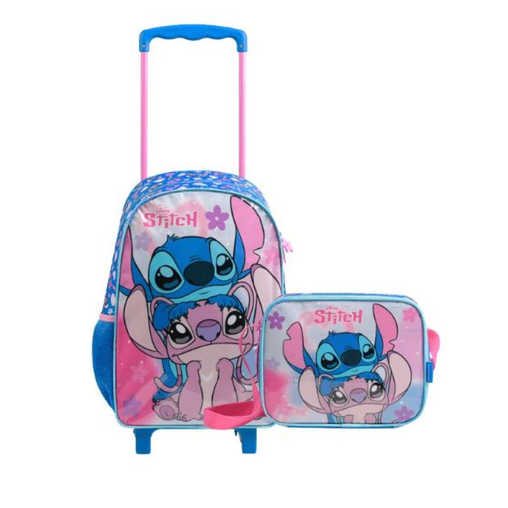 Kit Mochila de Rodinha e Lancheira Térmica Infantil Feminina Stitch Azul