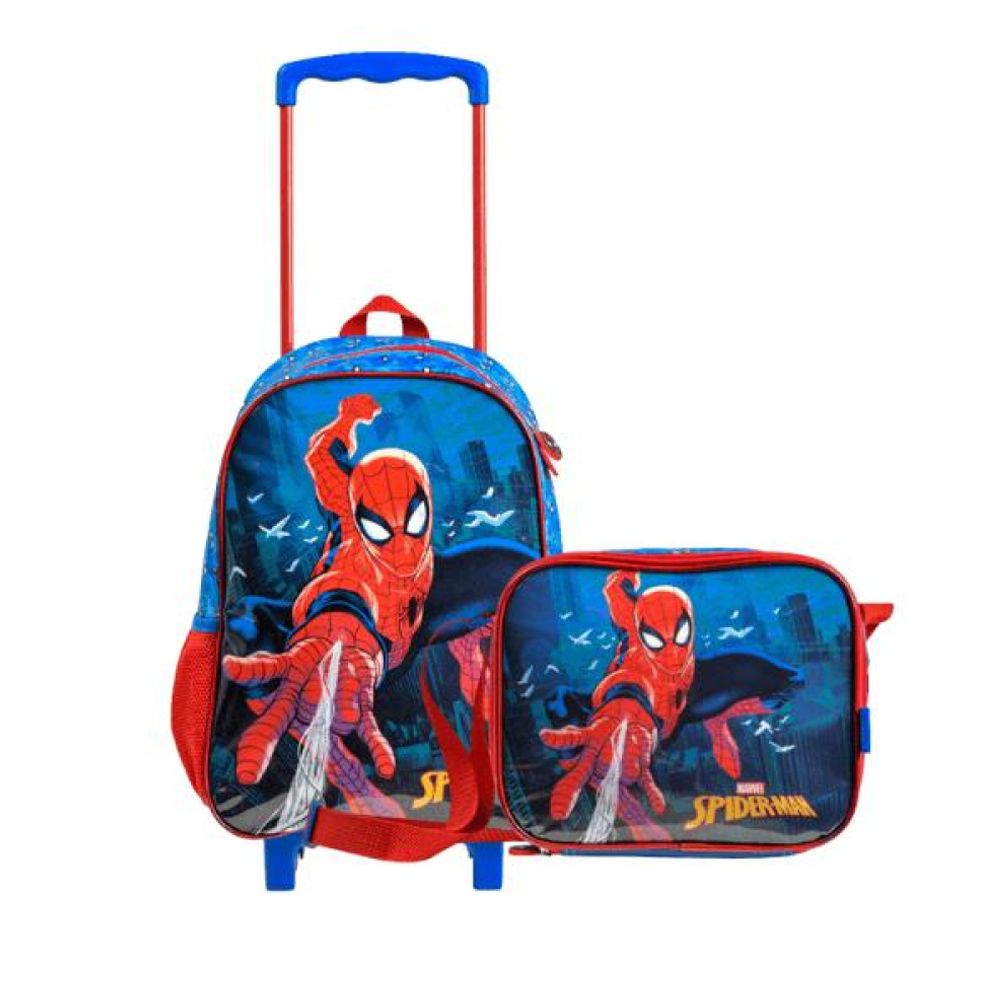 Kit Escolar Homem-Aranha Rodinhas, a solução ideal para pais que buscam qualidade, ergonomia e estilo Marvel. Este conjunto é composto pela Mochila de Rodinhas Infantil Homem aranha e uma Lancheira. A mochila, otimizada para o transporte diário, possui rodinhas resistentes. Construída com material durável, oferece um compartimento principal espaçoso e bolso lateral para garrafas. Perfeito para a volta às aulas, este kit garante organização e praticidade.