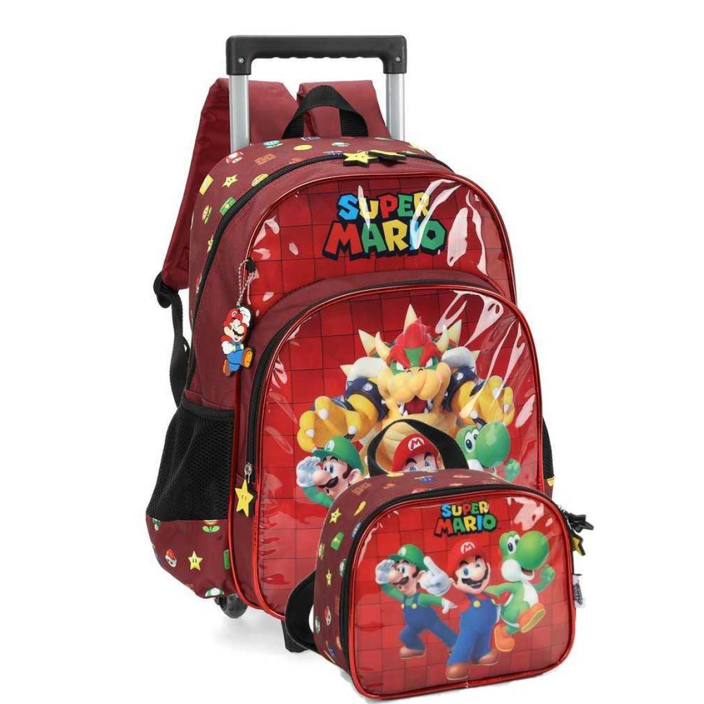 Para os aventureiros de plantão, esta mochila de rodinhas é a companheira ideal para as jornadas escolares ou viagens imaginárias pelos reinos do cogumelo.