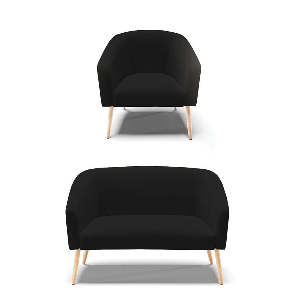 Kit Namoradeira 2 Lugares E 1 Poltrona Preto A79 Pés Palito