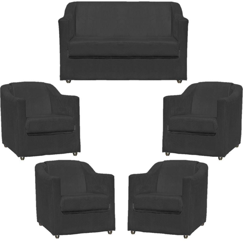 Kit Namoradeira Decorativa + 4 Poltronas Para Sala Manicure Recepção Consultório Mila Suede