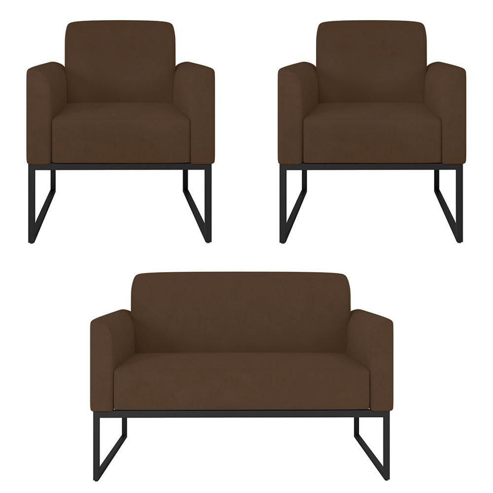 Kit Namoradeira E 2 Poltronas Decorativas Base Industrial Preta Maressa S06 Suede Marrom - Ibiza