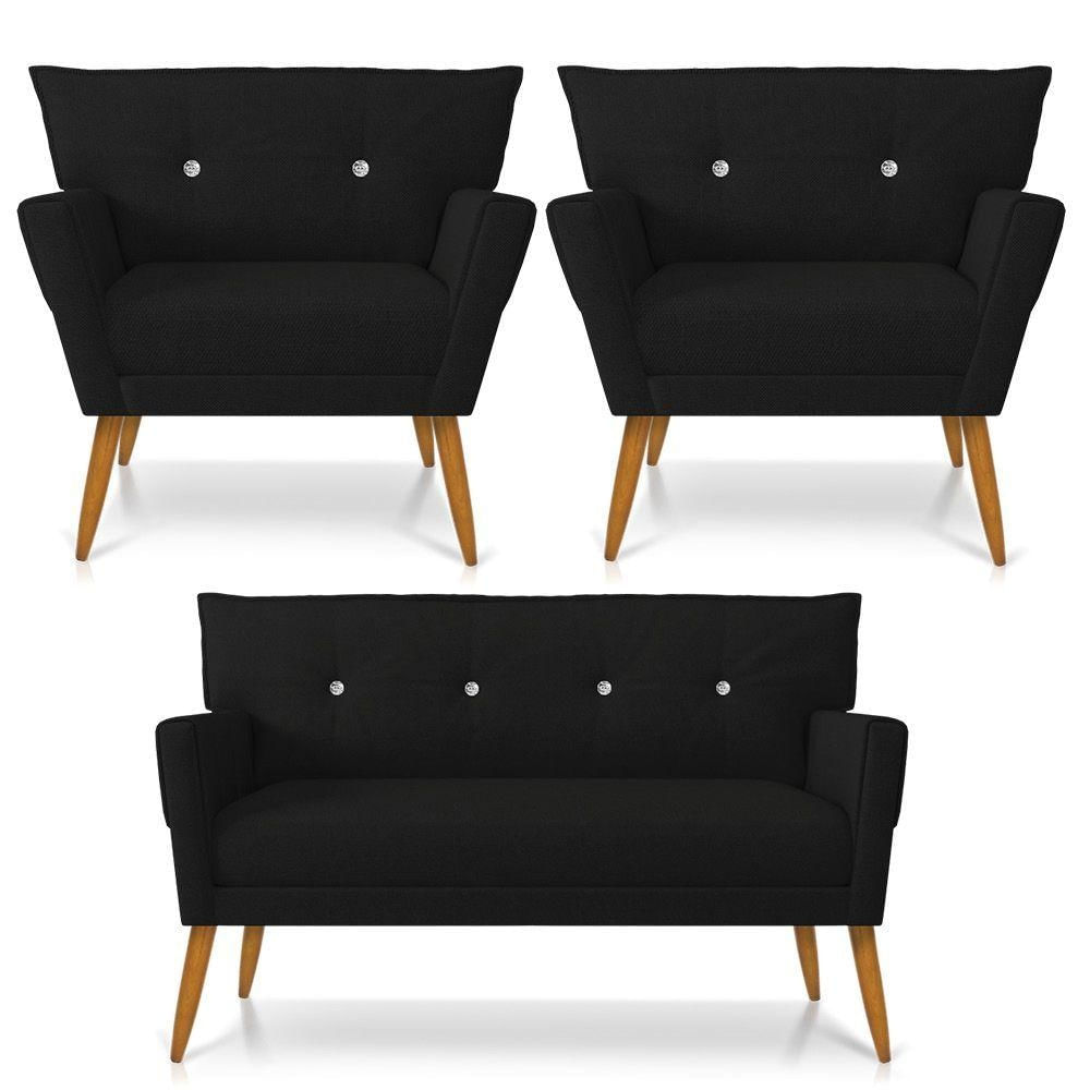 Kit Namoradeira E Poltronas Anitta Linho D'rossi A79 Preto