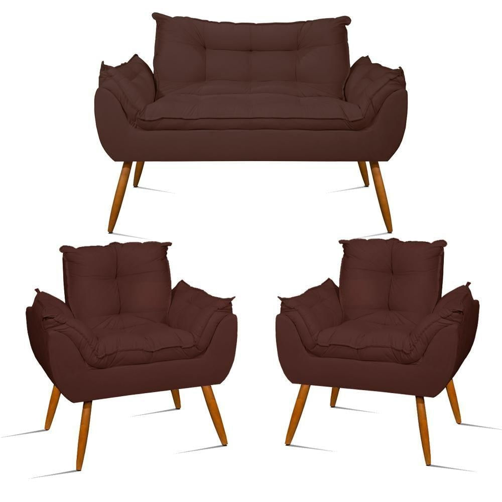 Kit Namoradeira Opala Sala Quarto + 02 Poltrona Balaqui Decor Cor:marrom Marrom
