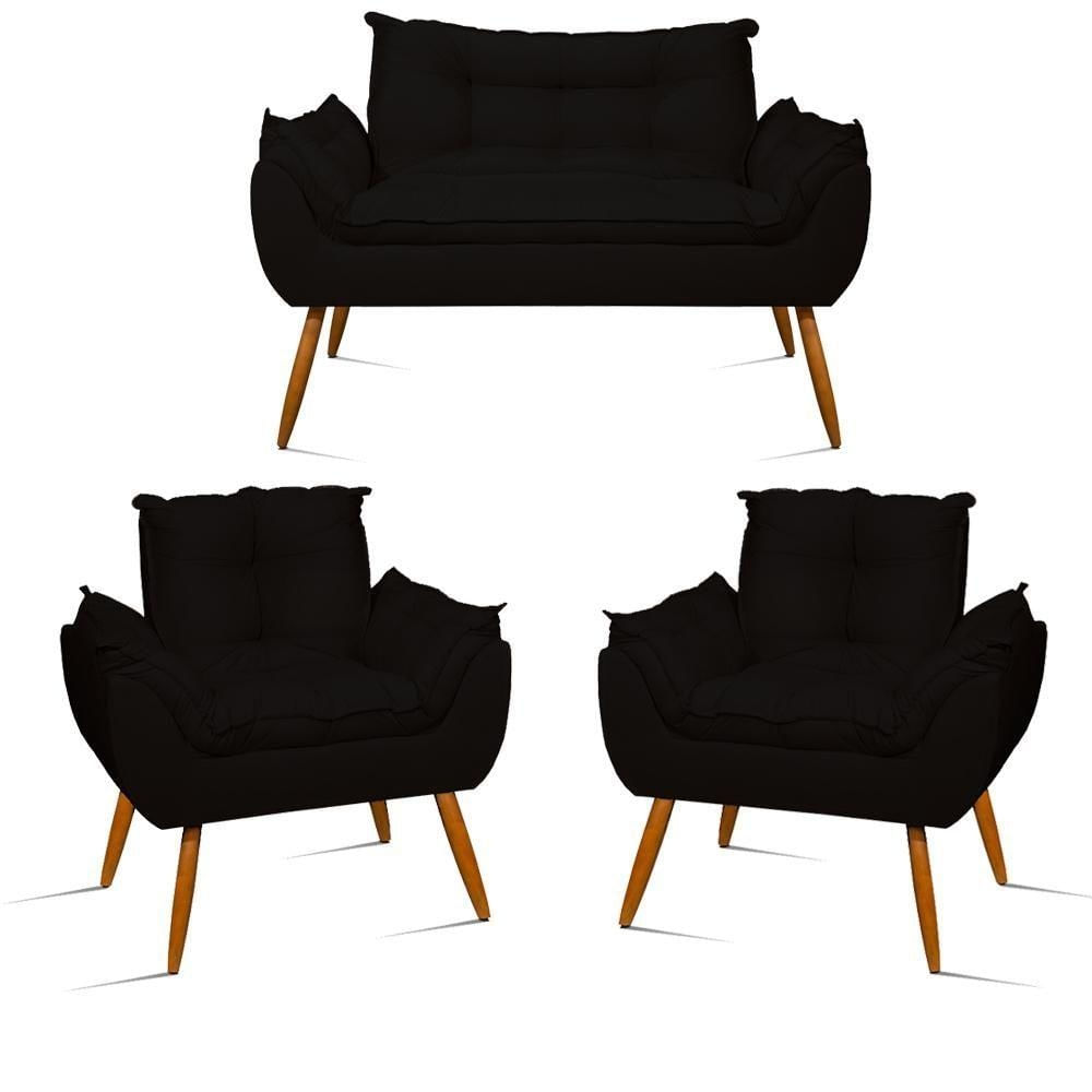 Kit Namoradeira Opala Sala Quarto + 02 Poltrona Balaqui Decor Cor:preto Preto