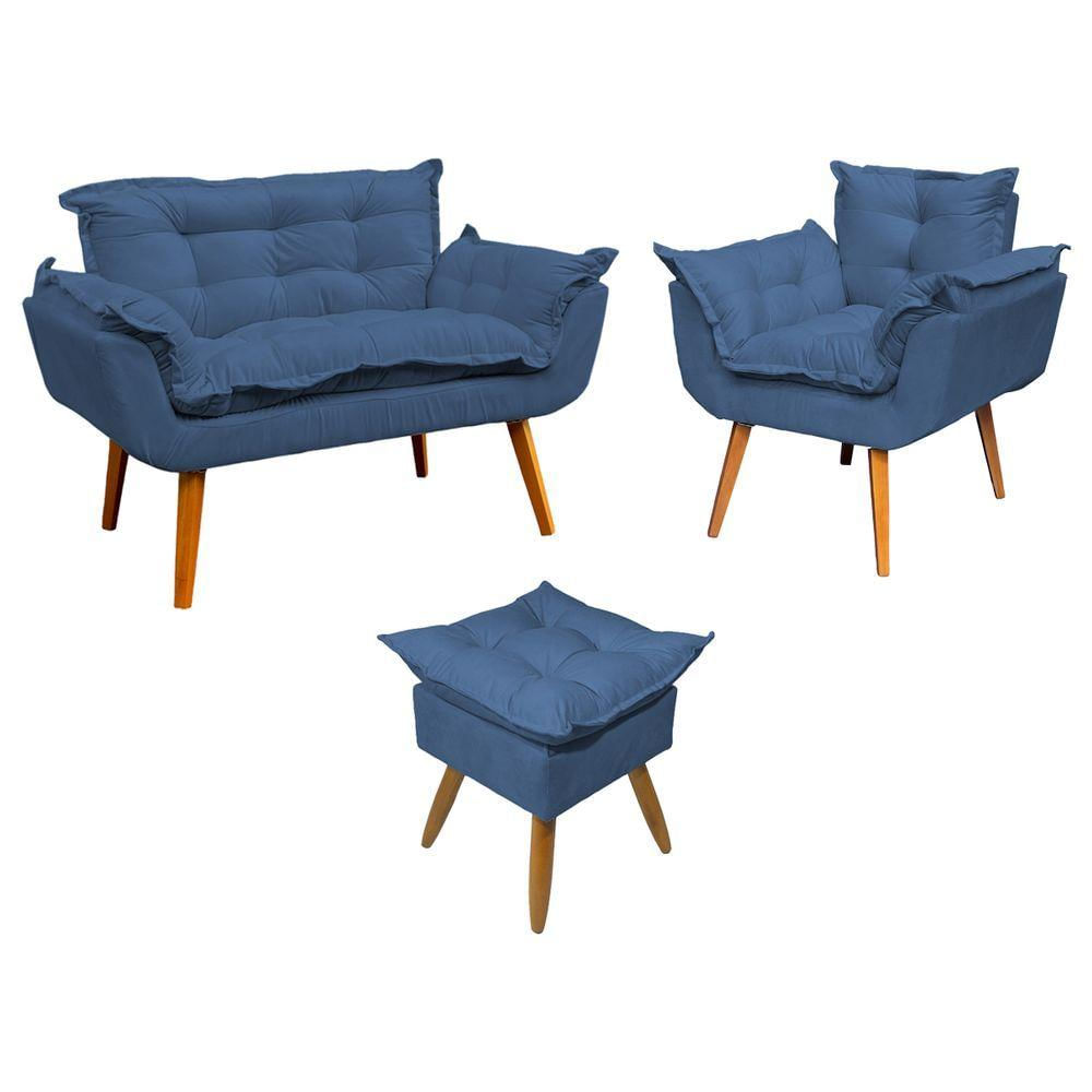 Transforme seu ambiente com o Kit Alice, composto por namoradeira, poltrona e puff, combinando sofisticação, conforto e versatilidade. Com design elegante, adapta-se a diversos estilos de decoração, desde os mais modernos aos clássicos. Ideal para salas de estar, recepções, consultórios e escritórios, esse conjunto harmoniza perfeitamente com diferentes paletas de cores e elementos decorativos. Além da estética refinada, proporciona um ambiente acolhedor e convidativo, valorizando cada detalhe do seu espaço.Composição e Estrutura:Fabricado com madeira maciça de eucalipto, o Kit Alice garante durabilidade e resistência. O assento e encosto possuem enchimento 100% em fibra siliconada, proporcionando maciez e conforto excepcionais. Revestido em tecido suede, oferece um toque macio e sofisticado. Seus pés, em madeira na tonalidade castanho, possuem design moderno e estável, trazendo charme e elegância ao ambiente. Com capacidade para até 120 kg na poltrona e namoradeira, e 100 kg no puff, é a escolha ideal para quem busca qualidade, conforto e estilo.Especificações da Namoradeira:- Altura: 86 cm- Largura: 130 cm- Profundidade: 73 cm- Peso: 19 kg- Suporta até 120 kg.Especificações da Poltrona:- Altura: 86 cm- Largura: 80 cm- Profundidade: 73 cm- Peso: 13 kg- Suporta até 120 kg.Especificações do Puff:- Altura: 50 cm- Largura: 45 cm- Profundidade: 45 cm- Peso: 5 kg- Suporta até 100 kg.Atenção:Ao receber o produto, confira imediatamente se está de acordo com a compra e em perfeitas condições. Se houver qualquer irregularidade, recuse a entrega e devolva ao entregador, informando o motivo no verso da Nota Fiscal.Perguntas Frequentes:- Como calcular o frete? O frete é calculado automaticamente com base no CEP registrado.- Quais opções de tecidos estão disponíveis para este produto? Ele está disponível em Tecido Suede.Observações:- Limpeza recomendada: pano pouco úmido. Evite produtos químicos para prolongar a durabilidade e manter a garantia.- Garantia de 90 dias contra defeitos de fabricação.- Produto enviado montado.- Imagens ilustrativas. Pequenas variações de cor podem ocorrer devido à configuração da tela ou lote de tecidos.- Não acompanha objetos de decoração ou outros itens das fotos.- Não nos responsabilizamos por montagens, subidas de escadas ou elevadores no momento da entrega. Kit Namoradeira Poltrona e Puff Decorativo Para Sala Alice Suede