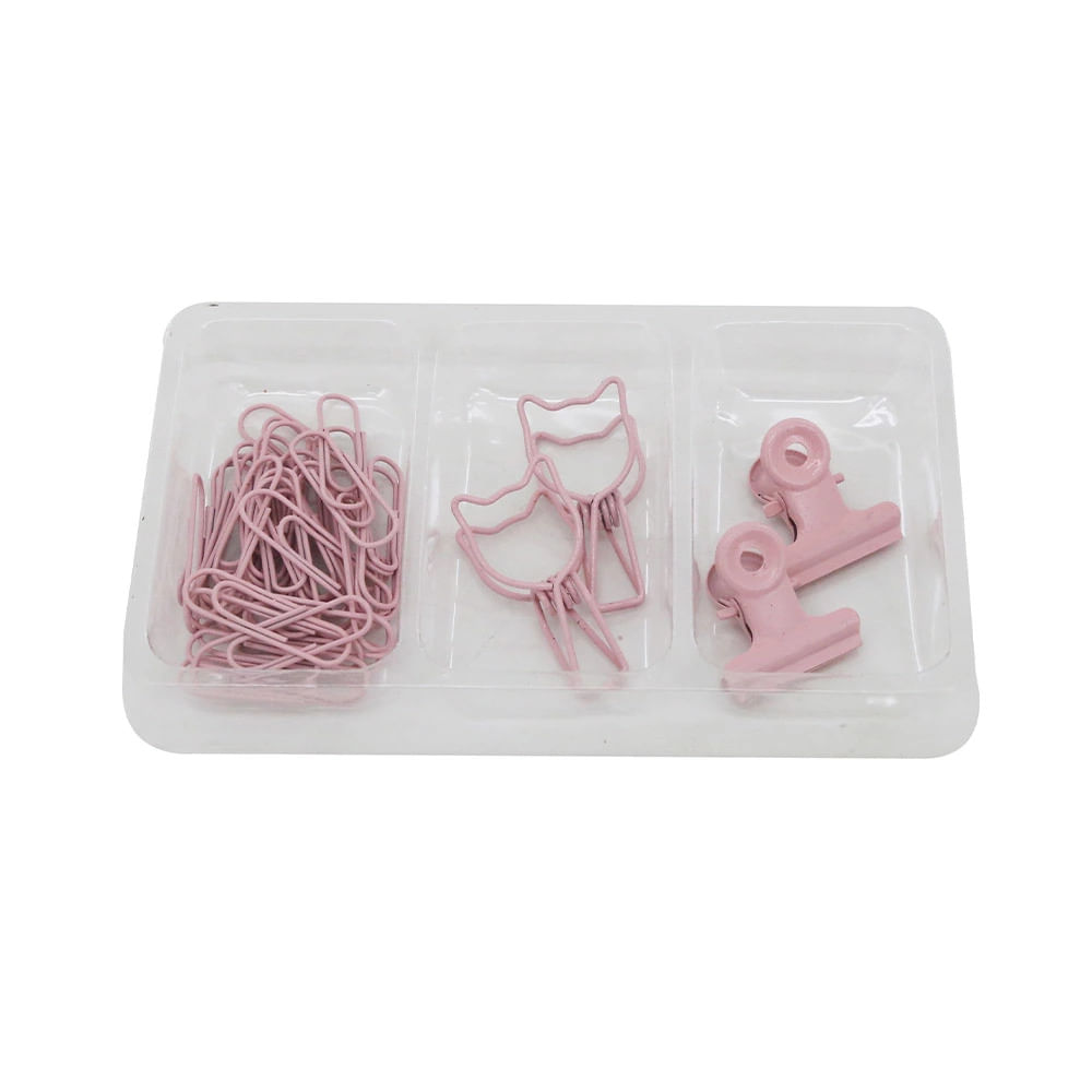 Kit Office Le Pink com Binder Clip Cat 33mm, Binder Clip 22mm e Clip Paper 28mm 34 Peças