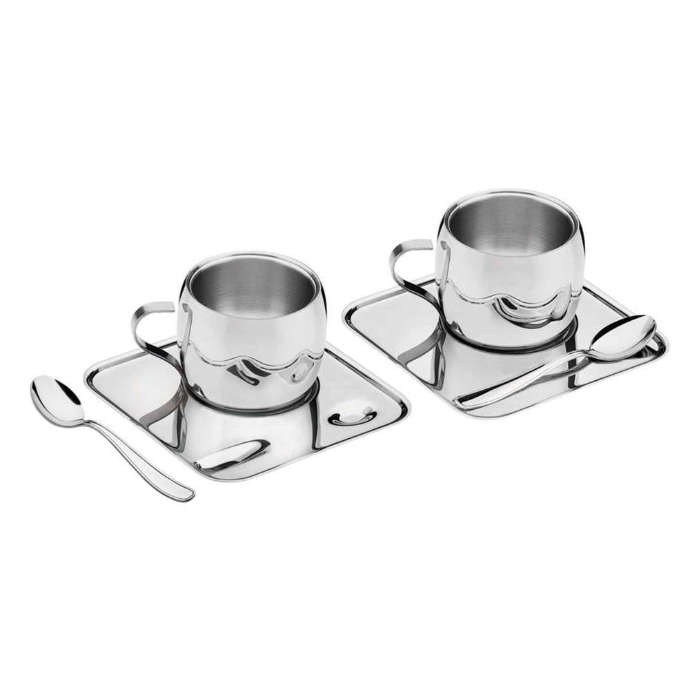 Kit Para Café Tramontina Em Aço Inox Acabamento Brilho Com Xícara Píres Quadrado E Colher 6 Peças Tramontina