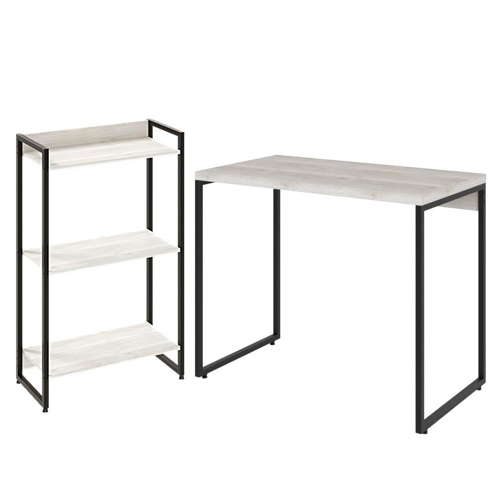 Kit Para Escritório Estante Areta 3 Prateleiras Mesa Industrial Aspen 90cm C01 Snow - Lyam Decor