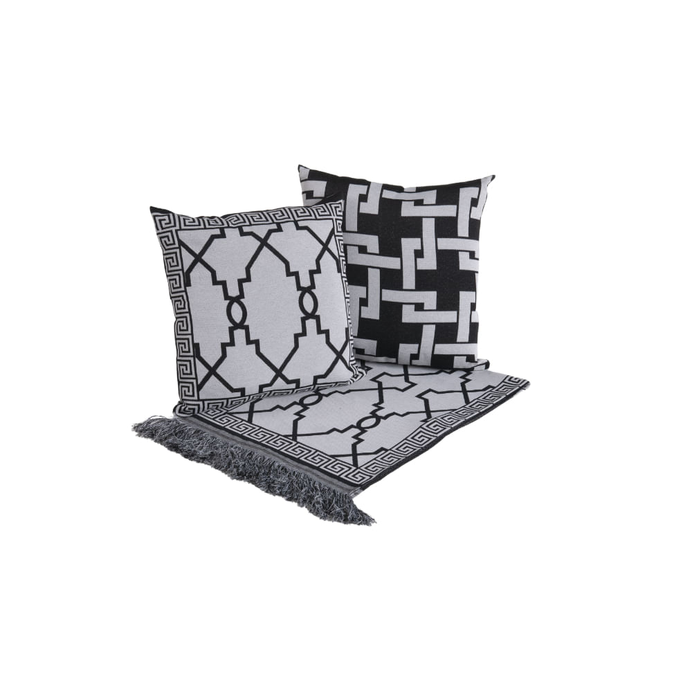 Kit Peseira Grécia 5 Peças King 60% Algodão / 40% Poliéster Tecido Jacquard Acompanha Almofadas Cheias - Preto