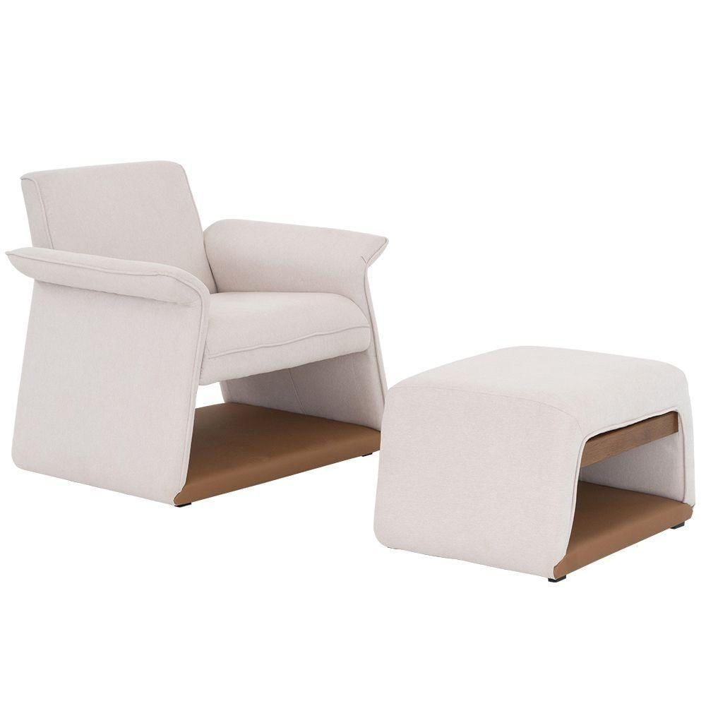 Kit Poltrona Com Puff Donna Poliéster Bege Cru Corano Caramelo - Nexta Casa