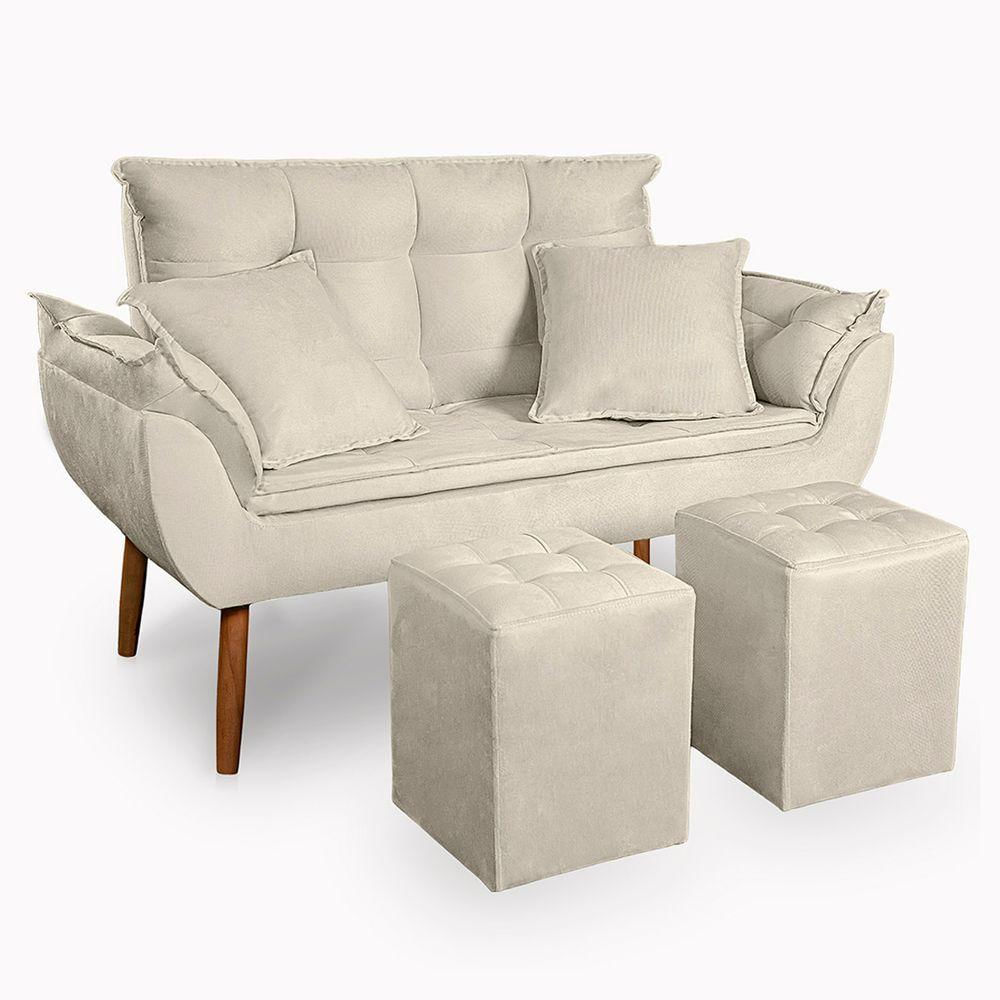 Kit Poltrona Decorativa Namoradeira 2 Puffs Quadrado e 2 Almofadas Suede Bege - LM DecorQuer deixar seu ambiente mais confortável e moderno?A Namoradeira Opala é a escolha perfeita. Um produto de qualidade que valoriza o seu espaço, unindo design sofisticado, resistência e muito conforto.Detalhes de FabricaçãoEstrutura em madeira de alta qualidadePercintas elásticas no assento e encostoRevestimento em tecido suedeEspuma aplicada na frente, laterais e parte traseiraAssento e encosto preenchidos com fibras siliconadasPés de madeira rosqueáveis com chapinhas metálicasMedidasNamoradeiraAltura: 60 cm sem pés / 85 cm com pésLargura: 135 cmProfundidade: 66 cmPeso suportado: até 155 kgPuff QuadradoAltura: 36 cmLargura: 30 cmProfundidade: 30 cmMontagem: rosquear os pésAlmofadas35 x 35 cmItens Inclusos1 Namoradeira Opala2 Puffs Quadrados2 AlmofadasObservações ImportantesImagens ilustrativas. Outros móveis e acessórios não acompanham o produtoLimpeza com flanela seca, sem molhar ou usar produtos abrasivosProduto para uso residencial em ambientes internos, não expor ao sol, calor ou umidadeAs cores podem variar conforme iluminação, tela do dispositivo ou lote do tecidoAntes da compra, confira as dimensões e verifique se o produto passa por portas, corredores e elevadores. A não inclui subida de escadas ou içamentoAo receber, verifique a embalagem no ato. Em caso de danos, não assine o de . A transportadora deve aguardar a conferênciaGarantia de 90 dias contra de fabricaçãoEnviamos para todo o através de transportadoraInformações AdicionaisPrazo de fabricação: 5 dias após a confirmação do pagamentoNão realizamos em zonas rurais ou distritosMantenha seus dados pessoais e sempre atualizados para evitar imprevistos na Estamos à disposição para esclarecer todas as suas dúvidasBoas compras!
