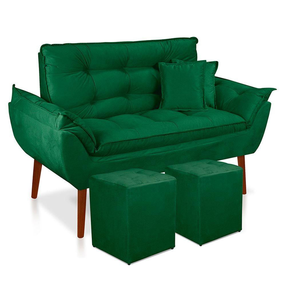 Kit Poltrona Decorativa Namoradeira 2 Puffs Quadrado e 2 Almofadas Suede Verde - LM DecorQuer deixar seu ambiente mais confortável e moderno?A Namoradeira Opala é a escolha perfeita. Um produto de qualidade que valoriza o seu espaço, unindo design sofisticado, resistência e muito conforto.Detalhes de FabricaçãoEstrutura em madeira de alta qualidadePercintas elásticas no assento e encostoRevestimento em tecido suedeEspuma aplicada na frente, laterais e parte traseiraAssento e encosto preenchidos com fibras siliconadasPés de madeira rosqueáveis com chapinhas metálicasMedidasNamoradeiraAltura: 60 cm sem pés / 85 cm com pésLargura: 135 cmProfundidade: 66 cmPeso suportado: até 155 kgPuff QuadradoAltura: 36 cmLargura: 30 cmProfundidade: 30 cmMontagem: rosquear os pésAlmofadas35 x 35 cmItens Inclusos1 Namoradeira Opala2 Puffs Quadrados2 AlmofadasObservações ImportantesImagens ilustrativas. Outros móveis e acessórios não acompanham o produtoLimpeza com flanela seca, sem molhar ou usar produtos abrasivosProduto para uso residencial em ambientes internos, não expor ao sol, calor ou umidadeAs cores podem variar conforme iluminação, tela do dispositivo ou lote do tecidoAntes da compra, confira as dimensões e verifique se o produto passa por portas, corredores e elevadores. A não inclui subida de escadas ou içamentoAo receber, verifique a embalagem no ato. Em caso de danos, não assine o de . A transportadora deve aguardar a conferênciaGarantia de 90 dias contra de fabricaçãoEnviamos para todo o através de transportadoraInformações AdicionaisPrazo de fabricação: 5 dias após a confirmação do pagamentoNão realizamos em zonas rurais ou distritosMantenha seus dados pessoais e sempre atualizados para evitar imprevistos na Estamos à disposição para esclarecer todas as suas dúvidasBoas compras!