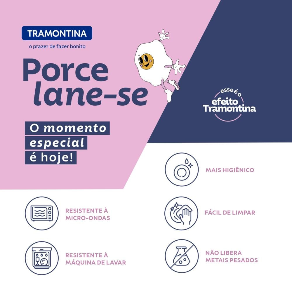 Transforme suas manhãs com o encanto retrô da coleção Groovy Breakfast da Tramontina. Inspirada nos clássicos dos anos 20, essa coleção traz um toque de elegância e nostalgia à sua mesa. Com o Kit Prato Raso Tramontina Groovy Breakfast em Porcelana 25 cm 02 Peças, suas refeições ganham um novo significado. Desde o café da manhã apressado até aquele lanchinho improvisado, esses pratos são perfeitos para todas as ocasiões. Feitos em porcelana de alta qualidade, são resistentes a micro-ondas e lava-louças, garantindo praticidade sem abrir mão do estilo. Além disso, sua baixa porosidade impede a proliferação de fungos e bactérias, proporcionando uma experiência higiênica e segura. Complemente sua coleção com os outros itens da linha, incluindo pratos de sobremesa, xícaras, frigideiras e muito mais. Desperte a nostalgia e o charme em cada refeição com o Kit Prato Raso Tramontina Groovy Breakfast.