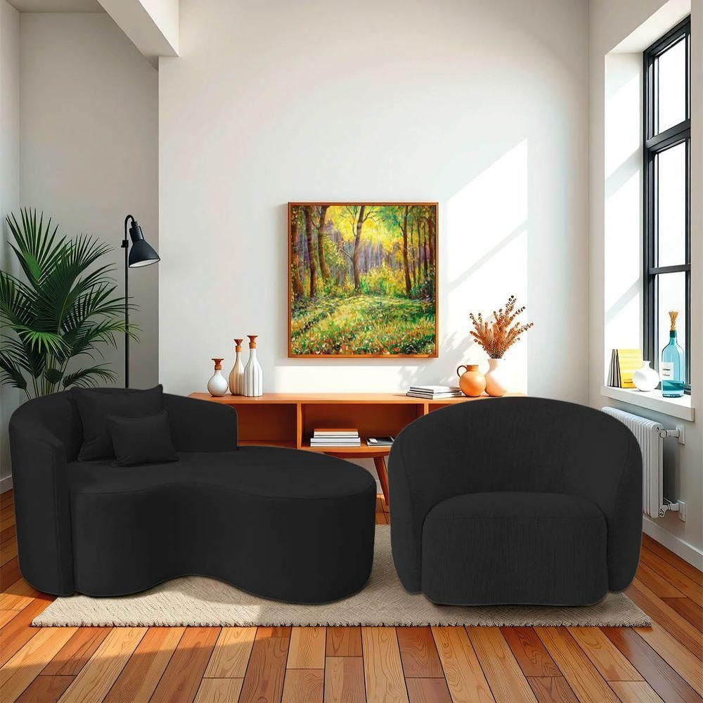 Kit Recamier Curvo Sala De Estar Inglaterra 150cm Lado Direito E Poltrona Orgânica Luxo Amore Bouclé Preto
