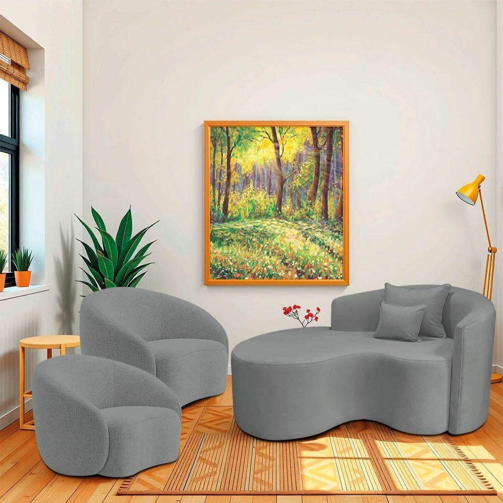 Kit Recamier Curvo Sala De Estar Inglaterra 150cm Lado Esquerdo E 2 Poltronas Orgânica Luxo Amore Bouclé Cinza