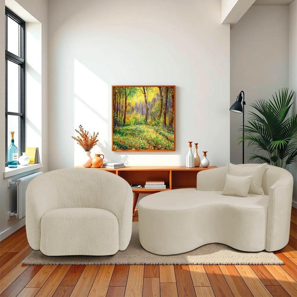 Kit Recamier Curvo Sala De Estar Inglaterra 150cm Lado Esquerdo E Poltrona Orgânica Luxo Amore Bouclé Bege