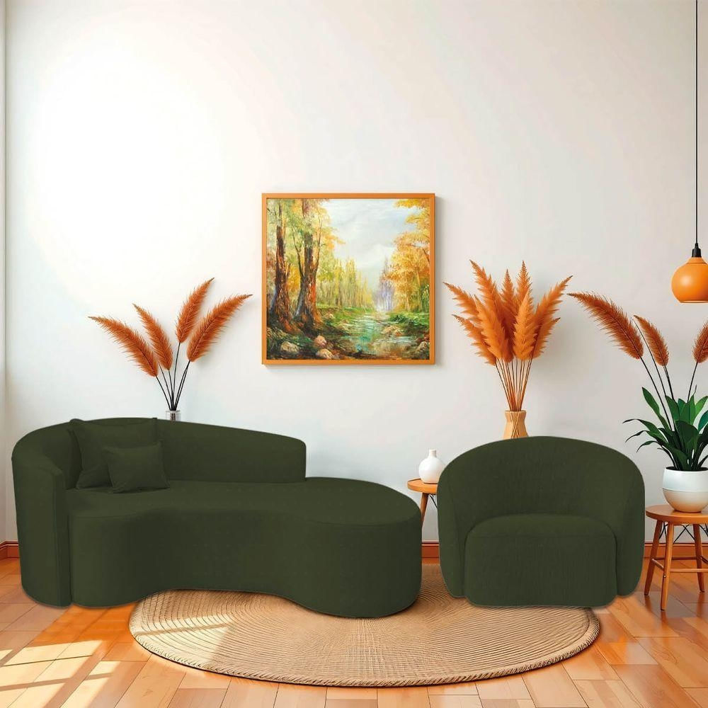 Kit Recamier Curvo Sala De Estar Inglaterra 200cm Lado Direito E Poltrona Orgânica Luxo Amore Linho Verde
