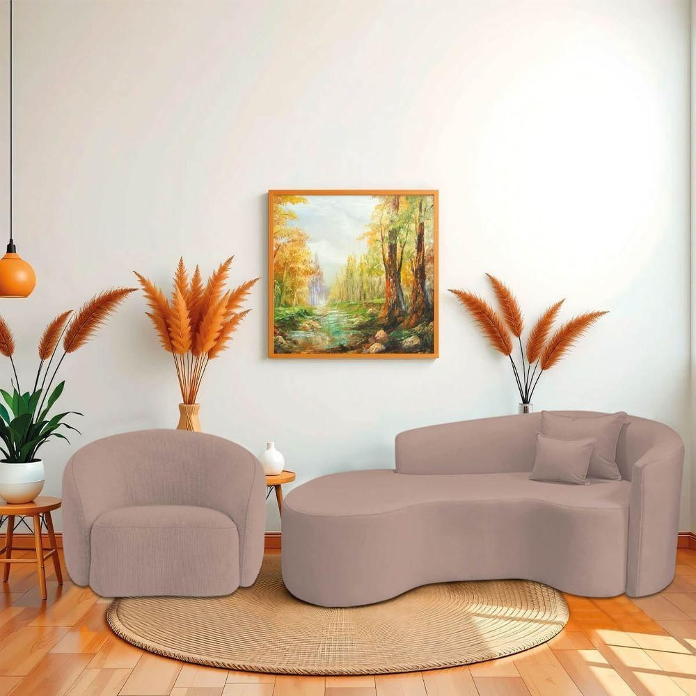 Em busca de móveis que unam beleza, conforto e sofisticação? O Recamier Inglaterra e a Poltrona Amore formam uma combinação ideal para transformar seu ambiente. O recamier, com seu design curvo e acabamento refinado, traz charme e elegância, além de uma estrutura sólida que garante conforto e durabilidade. A Poltrona Amore, com linhas suaves e um design orgânico, oferece uma experiência luxuosa e convidativa, agregando ainda mais estilo ao espaço. Juntos, esses móveis criam uma atmosfera acolhedora e sofisticada, perfeita para quem deseja um lar repleto de charme, conforto e personalidade.Especificações Técnicas do Recamier Curvo Inglaterra:- Altura: 74 cm; - Largura: 200 cm; - Profundidade: 100 cm; - Peso: 35 Kg; - Peso Suportado: 300 Kg.Especificações Técnicas da Poltrona Amore:Largura: 77cm Altura: 73cm Profundidade: 75cm Largura do Assento: 62cm Peso Suportado: 120kg Pés: 2cmDiferenciais do Divã Recamier Curvo Inglaterra:- Material da Estrutura: fabricado com Madeira Pinus e Eucalipto Reflorestada, e alguns detalhes em MDF; - Tipo de Assento: estofado e com espuma D-23; - Tipo de Encosto: estofado e com espuma D-23;Diferenciais da Poltrona Amore:- Material da Estrutura: fabricado com Madeira Pinus e Eucalipto Reflorestada, e alguns detalhes em MDF; - Tipo de Assento: estofado e com espuma D-23; - Tipo de Encosto: estofado e com espuma D-23;Recomendações de limpeza:- Limpar com flanela limpa e seca; - Não molhar o móvel e não expor em lugar úmido ou próximo de fontes de calor; - Não usar produtos abrasivos;ATENÇÃO!!Observações Importantes:- As imagens ambientadas são meramente ilustrativas e podem apresentar itens que não compõe o produto; - Objetos decorativos que aparecem na foto não acompanham o produto; - As cores do produto podem variar de acordo com o monitor, a iluminação do ambiente, ou sua percepção visual; - O Recamier Inglaterra e a Poltrona Amore chegaram montados para você; - Confira as dimensões antes da compra e certifique-se de que o produto passará por elevadores, portas e corredores, já que nossa entrega não inclui a subida de lances de escada, ou o lançamento de produtos; - Ao receber seus produtos, verifique no ato do recebimento qualquer dano na embalagem. Caso tenha alguma avaria, favor não assinar o comprovante de recebimento; - Produto para uso residencial em ambiente interno, não devendo ficar exposto diretamente ao sol, calor e umidades excessivas.