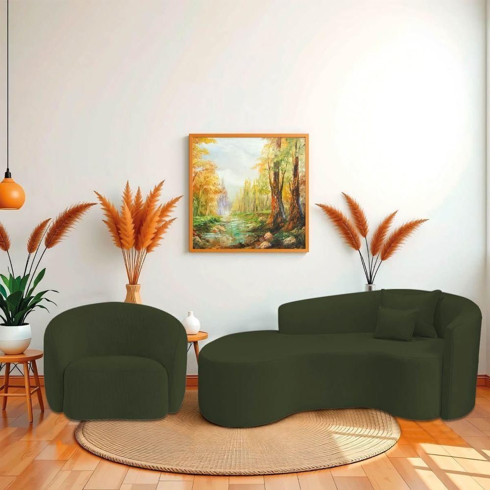 Em busca de móveis que unam beleza, conforto e sofisticação? O Recamier Inglaterra e a Poltrona Amore formam uma combinação ideal para transformar seu ambiente. O recamier, com seu design curvo e acabamento refinado, traz charme e elegância, além de uma estrutura sólida que garante conforto e durabilidade. A Poltrona Amore, com linhas suaves e um design orgânico, oferece uma experiência luxuosa e convidativa, agregando ainda mais estilo ao espaço. Juntos, esses móveis criam uma atmosfera acolhedora e sofisticada, perfeita para quem deseja um lar repleto de charme, conforto e personalidade.Especificações Técnicas do Recamier Curvo Inglaterra:- Altura: 74 cm; - Largura: 200 cm; - Profundidade: 100 cm; - Peso: 35 Kg; - Peso Suportado: 300 Kg.Especificações Técnicas da Poltrona Amore:Largura: 77cm Altura: 73cm Profundidade: 75cm Largura do Assento: 62cm Peso Suportado: 120kg Pés: 2cmDiferenciais do Divã Recamier Curvo Inglaterra:- Material da Estrutura: fabricado com Madeira Pinus e Eucalipto Reflorestada, e alguns detalhes em MDF; - Tipo de Assento: estofado e com espuma D-23; - Tipo de Encosto: estofado e com espuma D-23;Diferenciais da Poltrona Amore:- Material da Estrutura: fabricado com Madeira Pinus e Eucalipto Reflorestada, e alguns detalhes em MDF; - Tipo de Assento: estofado e com espuma D-23; - Tipo de Encosto: estofado e com espuma D-23;Recomendações de limpeza:- Limpar com flanela limpa e seca; - Não molhar o móvel e não expor em lugar úmido ou próximo de fontes de calor; - Não usar produtos abrasivos;ATENÇÃO!!Observações Importantes:- As imagens ambientadas são meramente ilustrativas e podem apresentar itens que não compõe o produto; - Objetos decorativos que aparecem na foto não acompanham o produto; - As cores do produto podem variar de acordo com o monitor, a iluminação do ambiente, ou sua percepção visual; - O Recamier Inglaterra e a Poltrona Amore chegaram montados para você; - Confira as dimensões antes da compra e certifique-se de que o produto passará por elevadores, portas e corredores, já que nossa entrega não inclui a subida de lances de escada, ou o lançamento de produtos; - Ao receber seus produtos, verifique no ato do recebimento qualquer dano na embalagem. Caso tenha alguma avaria, favor não assinar o comprovante de recebimento; - Produto para uso residencial em ambiente interno, não devendo ficar exposto diretamente ao sol, calor e umidades excessivas.