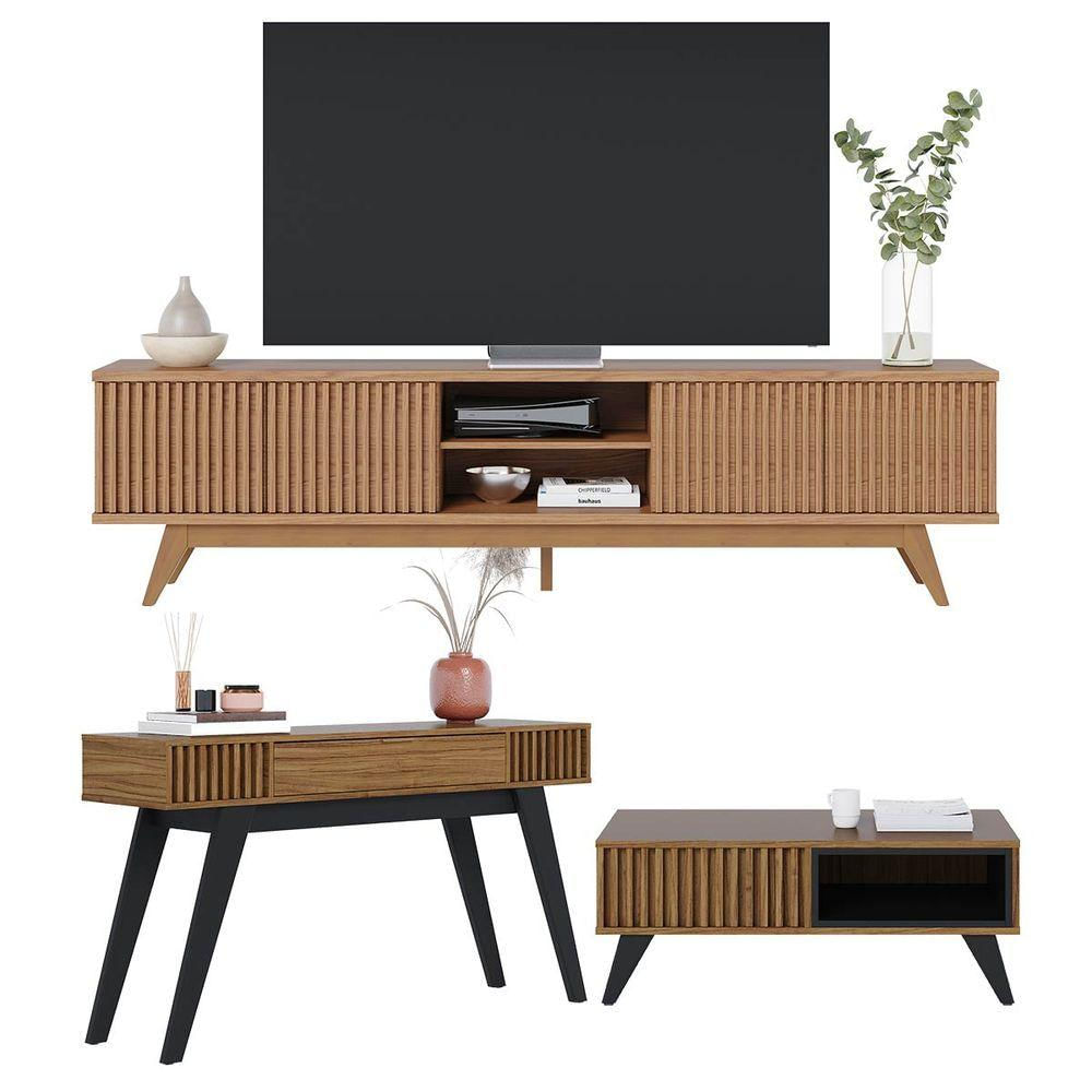 Kit Sala de Estar Rack com Mesa de Centro e Aparador Noce Preto 3 Peças Colibri