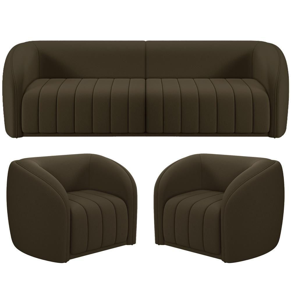 Kit Sofá 04 Lugares Para Sala 252 Cm Com 02 Poltronas Lazio M03 Veludo Marrom - Lyam Decor