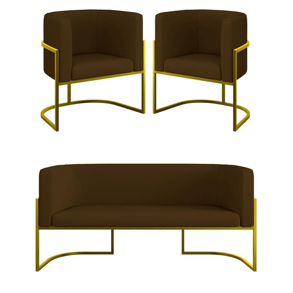 Transforme o seu ambiente com o Kit 2 Poltronas + Sofá 2 Lugares Base de Metal Black Balaqui. Este kit é a combinação perfeita de conforto, durabilidade e um design moderno, ideal para mesas de jantar, áreas de estar e até mesmo ambientes comerciais.Especificações do produtoTecido em CorinoEspuma D-23 com Alta densidadePercintas Elásticas que oferecem suporte adicionalEstrutura de madeira eucalipto proveniente de reflorestamentoInformações Técnicas (Produtos lado a lado)Altura: 76 cmLargura: 268 cmProfundidade: 64 cmPeso: 52 kgCapacidade de Suporte da Poltrona e Namoradeira: Suporta até 140 kg e 180 kgProdutos embaladosAltura: 79 cmLargura: 269 cmProfundidade: 69 cmPeso: 52 kgObservações ImportantesO produto tem 3 meses de garantia contra defeitos de fabricaçãoProduto possui uma embalagem segura, feita para evitar danos durante o transporteO Produto é entregue montadoA cor real pode variar ligeiramente devido às configurações da tela e ao tratamento das imagensO Prazo de envio é de 5 dias úteis após a confirmação da compra e enviamos para todo o BrasilPerguntas FrequentesComo devo limpar?Realizar a limpeza do tecido com um pano seco ou levemente umedecidoQuantos produtos irei receber nesta compra?Você receberá 3 volumes, ou seja, duas Poltronas e uma Namoradeira Lua.Para mais informações ou assistência com sua compra, nossa equipe está à disposição para ajudar Tipo De Produto: Sofá | Cor Principal: Não aplica | É Reclinável: Não | Desenho Do Tecido: Couro | Acessórios Incluídos: Não | Código Universal De Produto: Não aplica | É Sofá-Cama: Não | Estilo: Clássico | Cor Dos Pés: Dourado | Comprimento Do Colchão: Não aplica | Linha: Premium | Formato Do Sofá: Não aplica | Largura Da Cama: Não aplica | Material do estofamento: Corino | Unidades Por Kit: 3 | Densidade Da Espuma Do Assento: D-23 | Mecanismo De Abertura Do Produto: Não aplica | Profundidade Da Cama: Não aplica | Altura Da Cama: Não aplica | Largura Do Colchão: Não aplica | Material De Enchimento Do Encosto: Espuma | Requer Montagem: Não | Altura: 76 cm | Marca: B BALAQUI DECOR | Tipo de Garantia: Garantia do Fabricante | Coleção de Antiguidade: Não | Móvel Dobrável: Não | Tamanho do Pacote: Não aplica | Dimensão (A x L x C): 76 x 268 x 60 | Regulamentações aplicáveis a produtos perigosos (supplierDeclaredDGHZRegulation): Não aplica | Estofado: Corino | Número de Assentos: 4 | Duração da Garantia: 3 meses | Largura: 268 cm | País de Origem: Brasil | Profundidade: 60 cm | Peso do Item (itemWeight): 52 kg | Material: Madeira | Fabricante: BALAQUI DECOR | Precisa de baterias ou pilhas (areBatteriesRequired): Não | Peso suportado: 140 kg | Montagem: Montagem Completa | Quantidade de Lugares: 4 | Revestimento: Corino | Material dos pés: Metal | Materiais da estrutura: Madeira | É modular: Não | É Em forma de U: Não | É de canto: Não | É com chaise: Não | Modelo: Kit Lua | Quantidade de caixas de embalagem: 3 Cor: Marrom