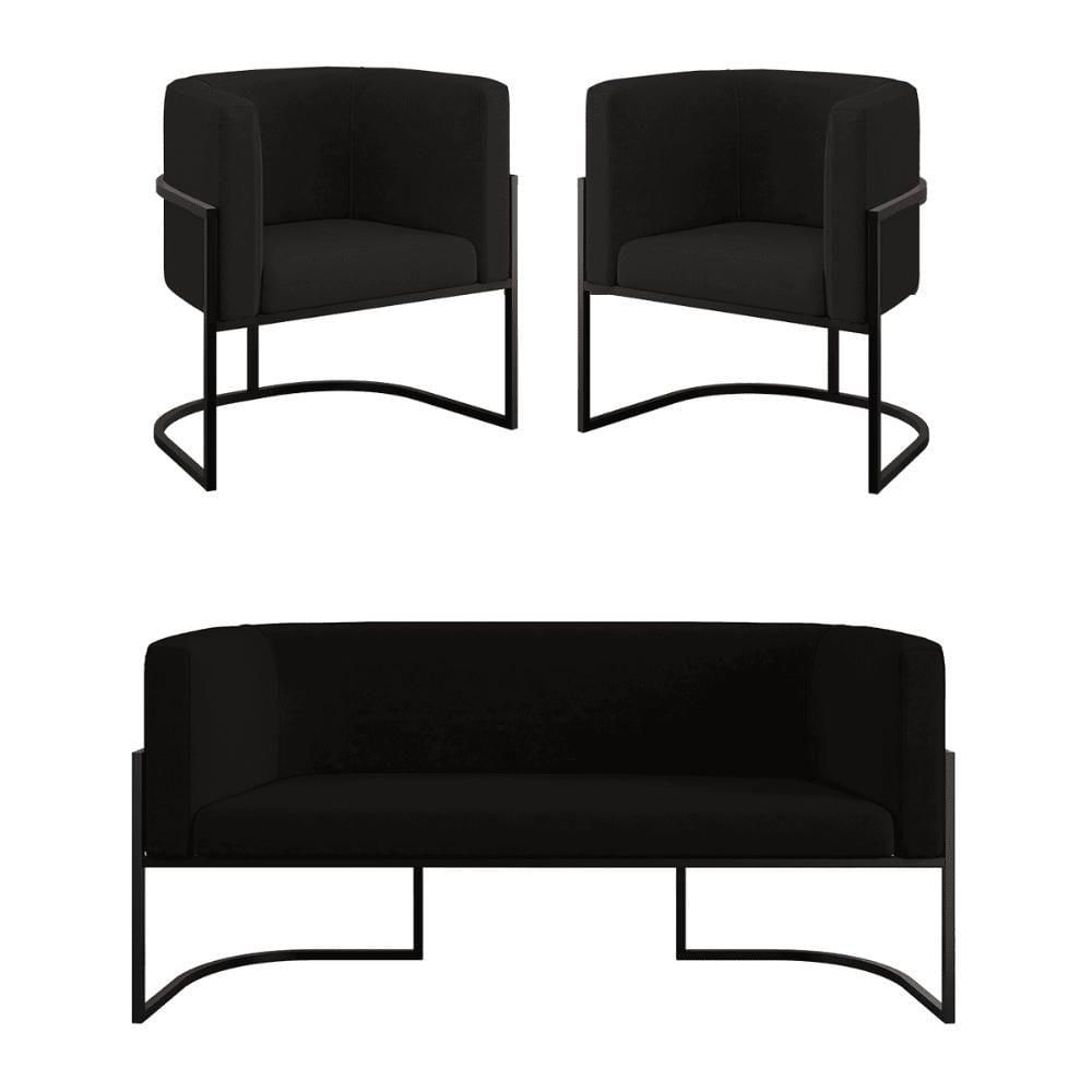 Kit Sofá 2 Lugares + 2 Poltronas Para Recepção – Balaqui Cor:preto Preto
