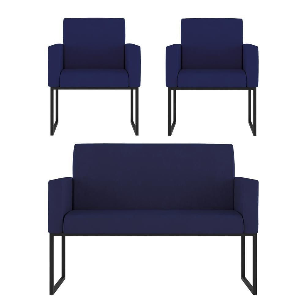 Kit Sofá 2 Lugares + 2 Poltronas Para Recepção Sala Balaqui Cor:azul Marinho Azul Marinho