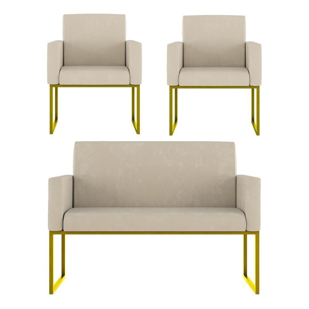 Kit Sofá 2 Lugares + 2 Poltronas Recepção Sala Base Dourada Cor:marrom Marrom