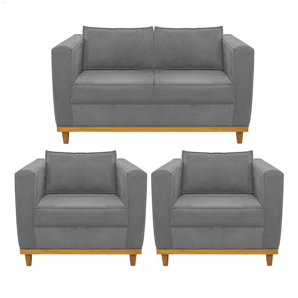Kit Sofá 2 Lugares E 2 Poltronas Europa Suede Cinza Adj Decor