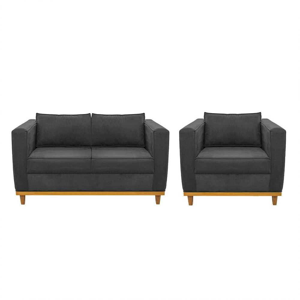 Kit Sofá 2 Lugares E Poltrona Europa Linho Chumbo Adj Decor