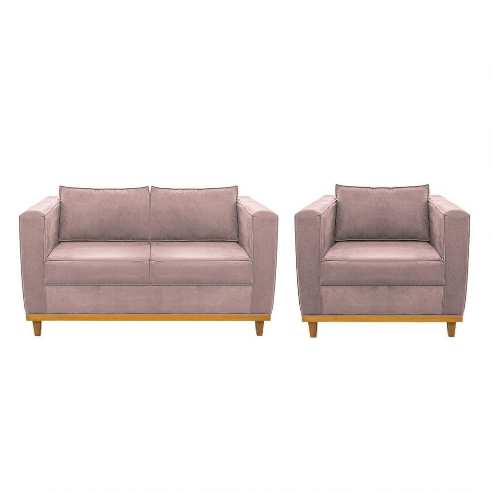 Kit Sofá 2 Lugares E Poltrona Europa Linho Adj Decor Cor Rosê
