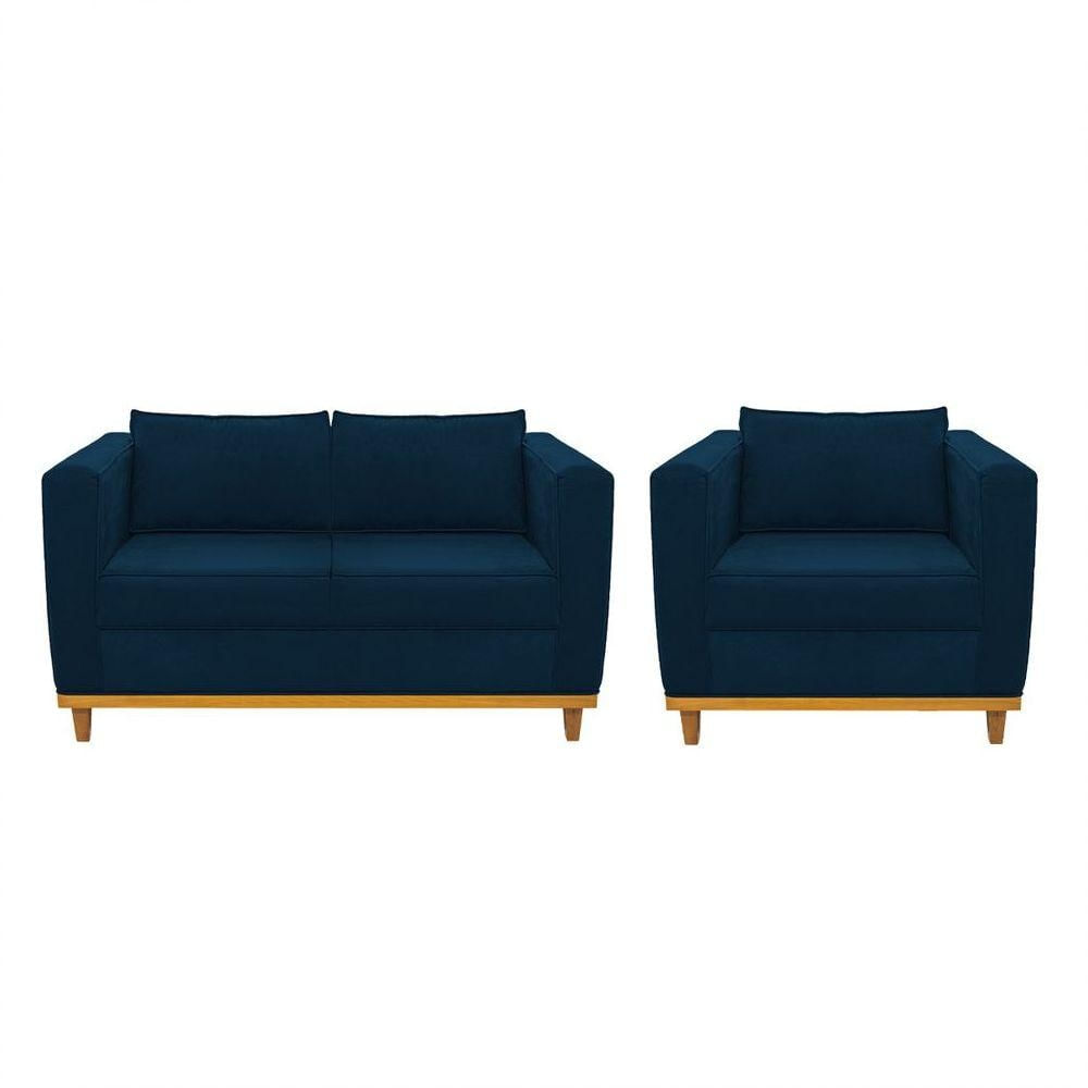 Kit Sofá 2 Lugares E Poltrona Europa Suede Azul Marinho Adj Decor