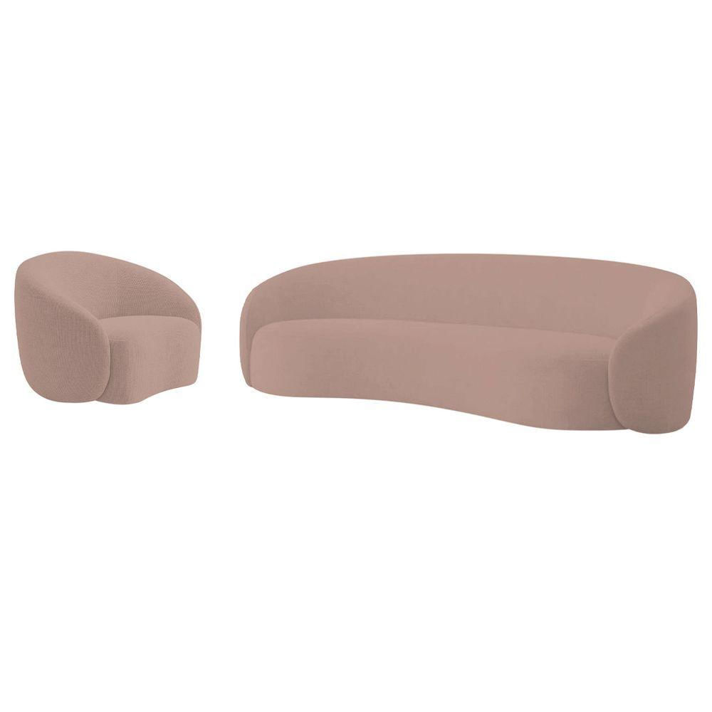 Kit Sofá 3 Lugares 200cm E Poltrona Orgânica Luxo Recepção Amore Linho Adj Decor Rosê