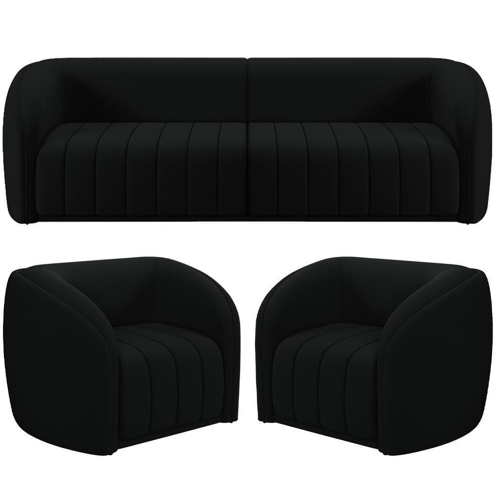 Kit Sofá 5 Lugares Para Sala 332cm Com 02 Poltronas Lazio M03 Veludo Preto - Lyam Decor