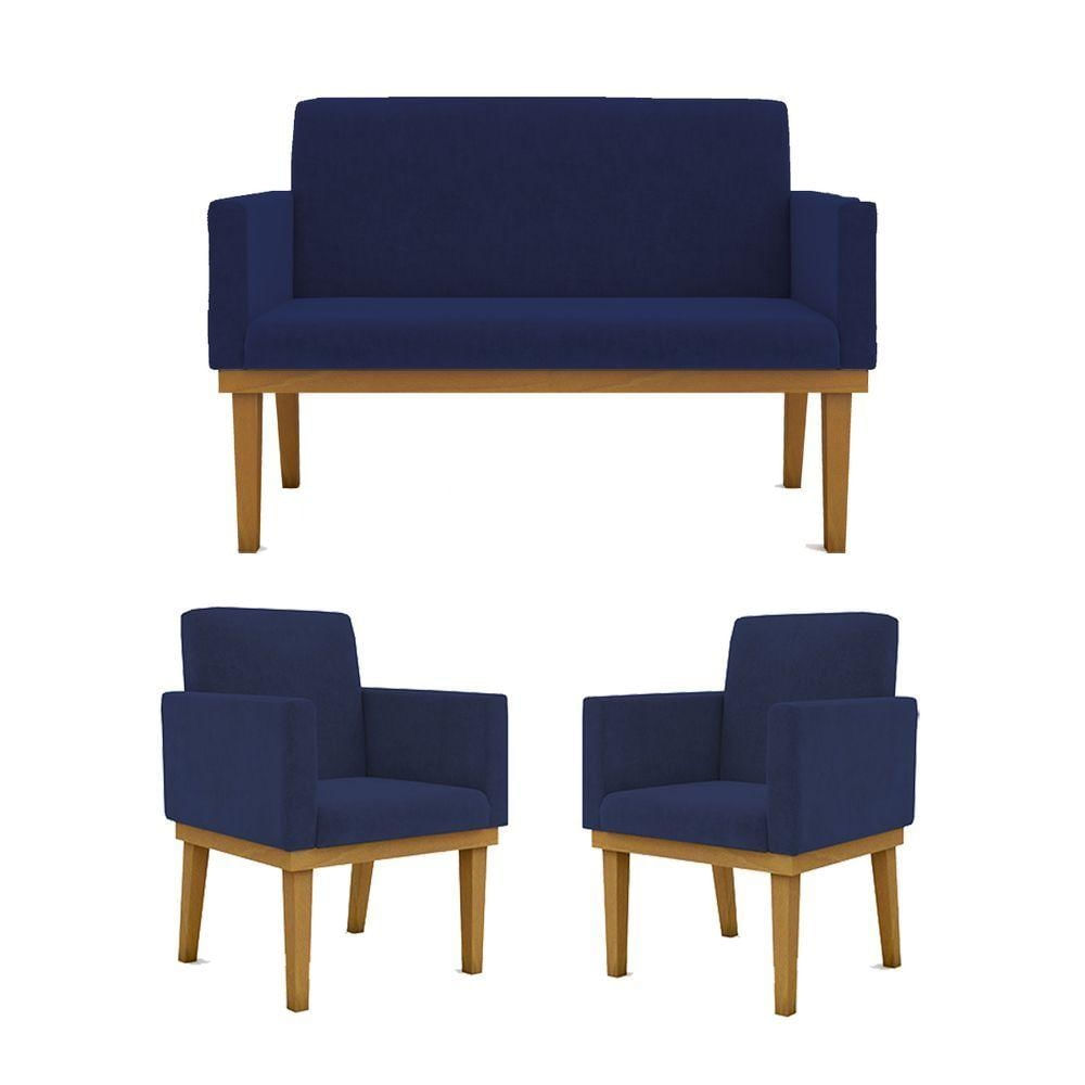 Kit Sofá Com Base Reforçada + 2 Poltronas Sala De Estar Cor:azul Marinho