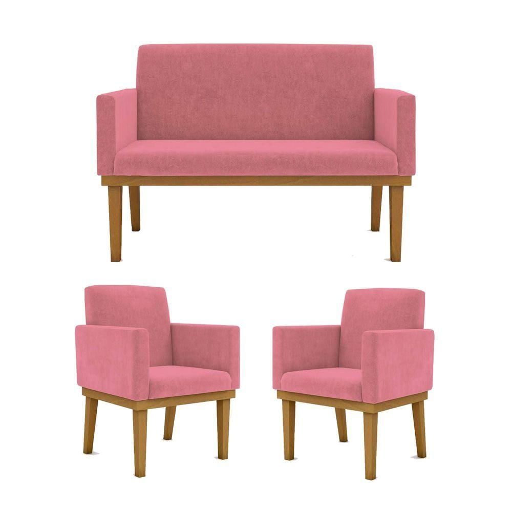 Kit Sofá Com Base Reforçada + 2 Poltronas Sala De Estar Cor:rosa