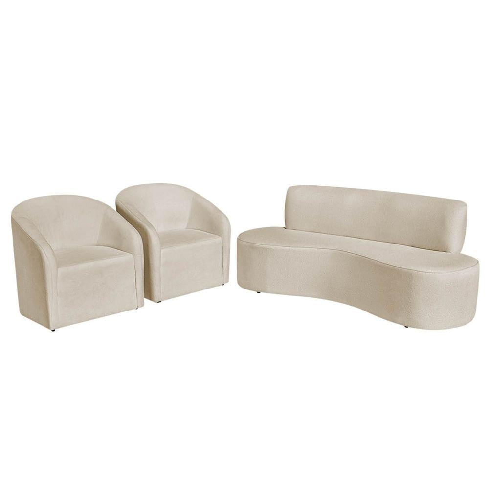 Kit Sofá Curvo Amsterdã 160cm E 2 Poltronas Luiza Max Bouclé Bege