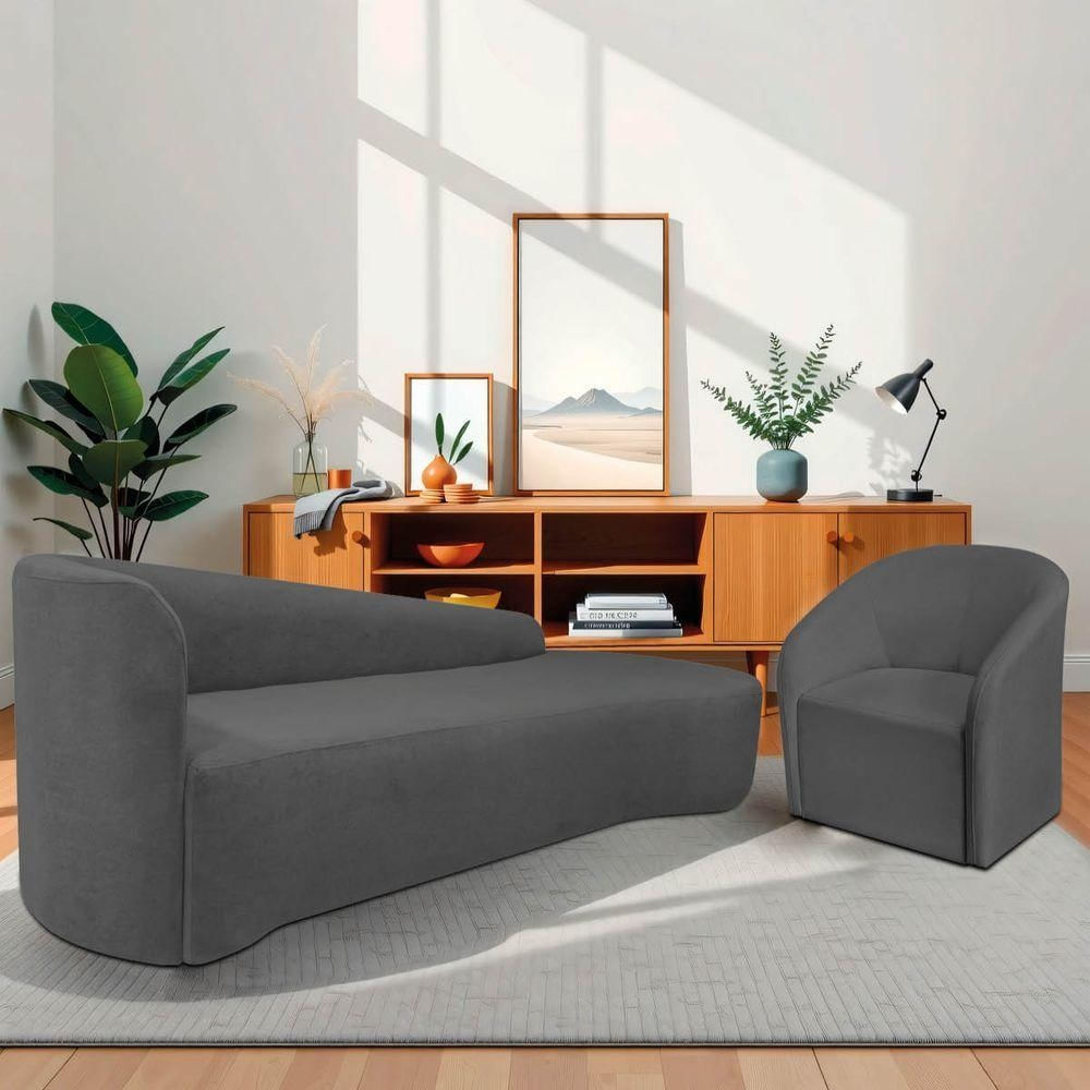 Kit Sofá Curvo França 200cm Ld. E Poltrona Luiza Max Conforto, Elegância E Design Moderno Linho Cinza Escuro